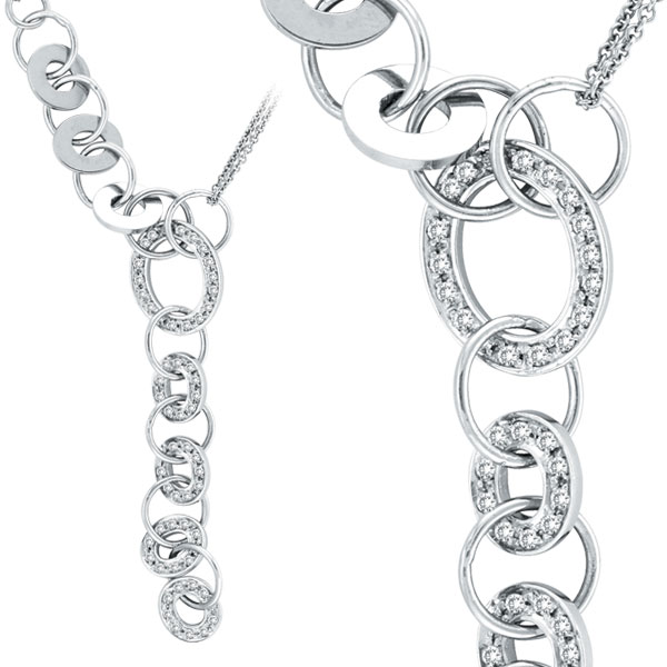 14K White Gold Designer 5.38ct Diamond Double Loop Necklace SI1-SI2 G-H