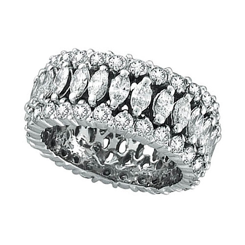 Picture of 18K White Gold Eternity 4.42ct Diamond Marquise Triple Row Ring SI1-SI2 G-H
