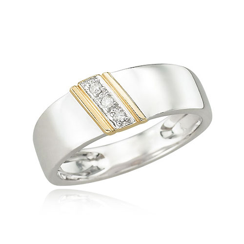 Represent your life together with modern elegance. Shiny, round Diamonds are set inside of the Yellow Gold for a stunning finish. A White Gold band features a diagonal section crafted from Yellow Gold at the front of this ring. Also available in men's.