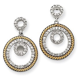 14K Two-Tone Gold Double Circle Diamond Earrings