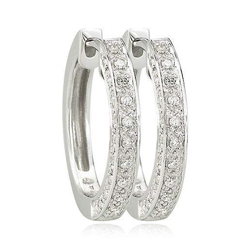 Add shimmering style to any ensemble with these beautiful diamond hoops. Polished White Gold hoops are hinged for a comfortable and secure fit and feature shiny, round Diamonds set at the front of this pair for a sparkling finish. Also available in Yellow Gold.