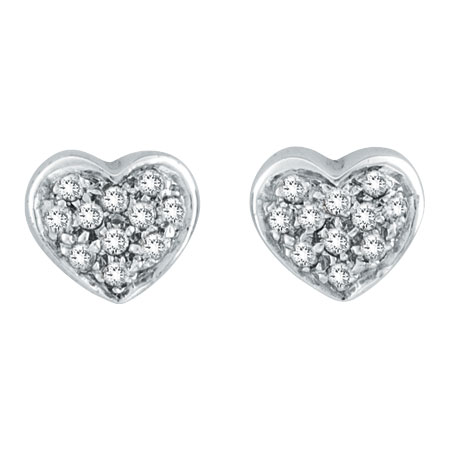 14K White Gold .17ct Diamond Heart Post Earrings