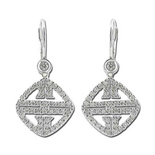 14K White Gold Decorative Stylish Diamond Earrings