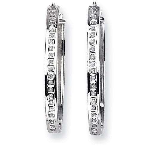 14k White Gold Diamond Fascination Oval Hinged Hoop Earrings