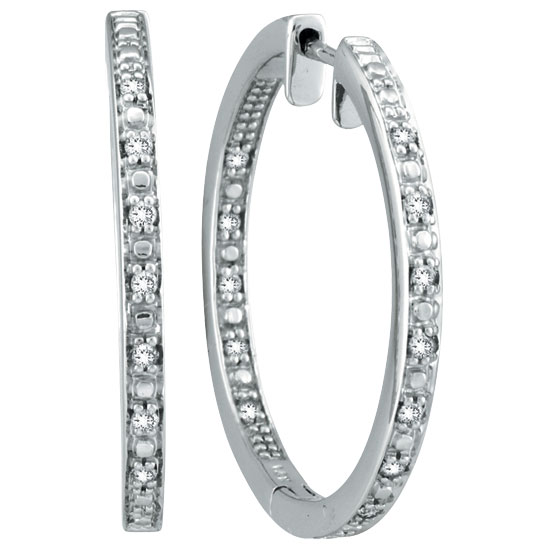 14K White Gold Large .25ct Diamond Hoop Earrings Inside Outside Hoops