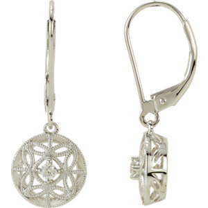 14kt White EARRINGS Complete with Stone NONE ROUND 02.20 MM Diamond Polished 1/10CTW DIA LEVERBACK EARRINGS
