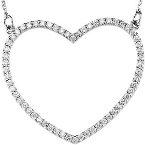 14kt White NECKLACE Complete with Stone ROUND VARIOUS Diamond Polished 1/4CTW DIA HEART NECKLACE