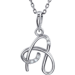 Necklace A Round 01.00 mm Diamond I1 Complete with Stone 14kt White Polished .03CTW Diamond Initial Necklace