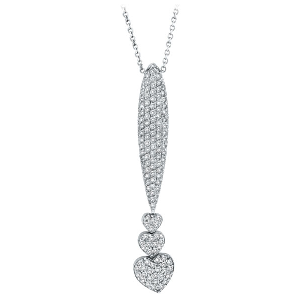 Picture of 14K White Gold 1.0ct Diamond Dangling Triple Heart Pendant On Cable Chain Necklace