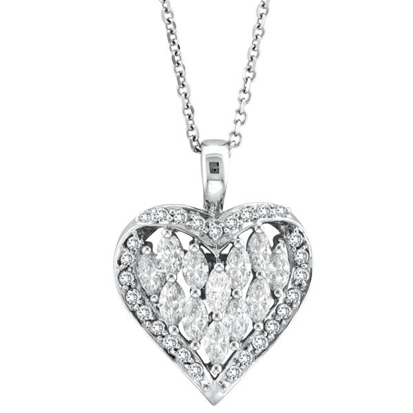 14K White Gold 2.01ct Marquise Diamond Twisted Heart Pendant On Cable Chain Necklace
