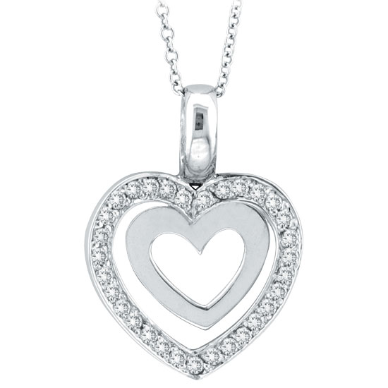 14K White Gold .28ct Diamond Double Heart Pendant On Cable Chain Necklace