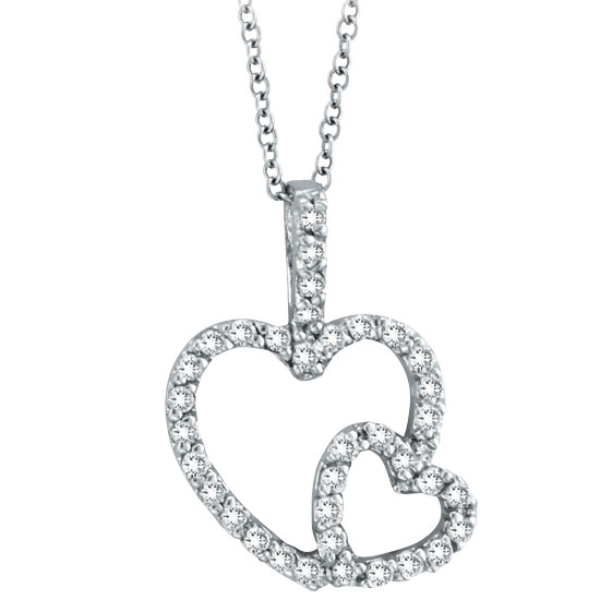 14K White Gold .40ct Diamond Double Heart Pendant Necklace