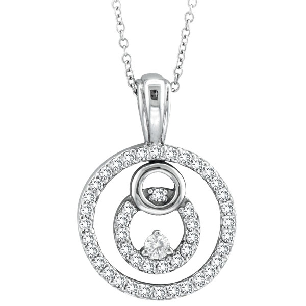 Picture of 14K White Gold .51ct Diamond Circular Designer Pendant On Cable Chain Necklace