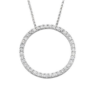 14K White Gold Open Circle Diamond Link Dropping Necklace