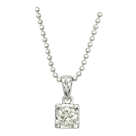 14K White Gold Princess & Baguette Cut .51ct Diamond Pendant On Cable Chain Necklace