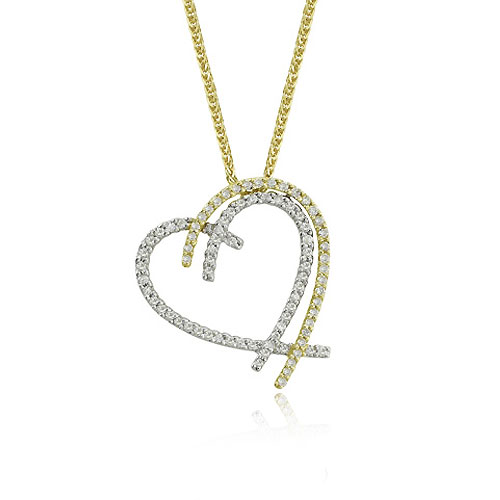 Add some shine to your wardrobe with this dazzling diamond necklace. A 16" Yellow Gold chain leads to an abstract open heart design that is crafted from White and Yellow Gold. The gold sections are studded with shiny Diamonds to create a lustrous look.