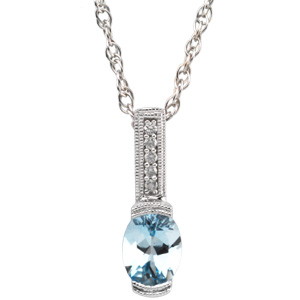 Picture of 14K White Gold Genuine Aquamarine And Diamond Pendant