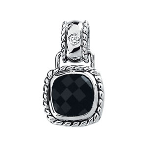 14K White Gold Genuine Onyx And Diamond Pendant