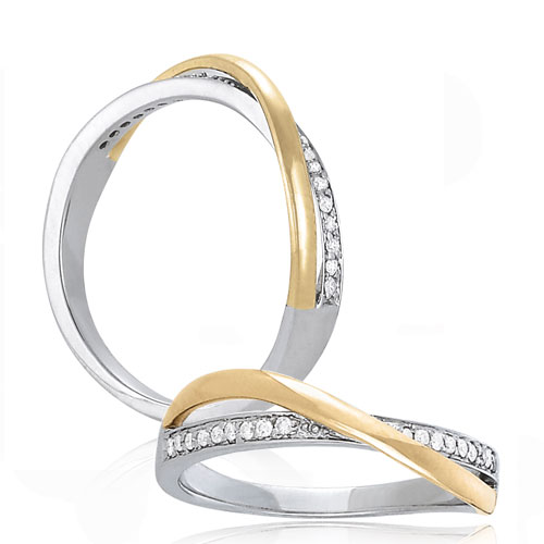 Picture of 14K White & Yellow Gold Diamond Stackable Thin Twisted Designer Ring
