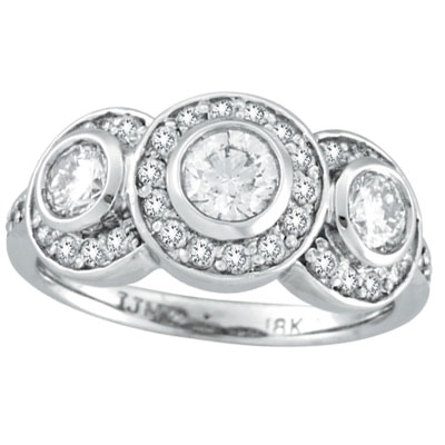 18K White Gold 1.76 Diamond Bezel 3 Large Stone Ring