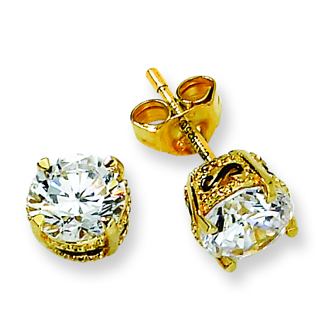Sterling Silver & Gold-Plated 8mm CZ Stud Earrings