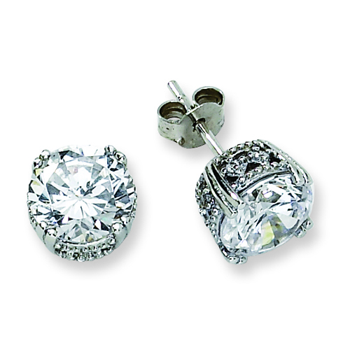 Sterling Silver CZ Round Post Earrings