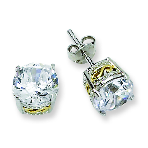 Sterling Silver & Gold-Plated 8mm CZ Stud Earrings