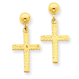 Picture of 14K Gold Polished & Textured Cross Earrings