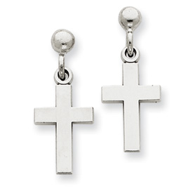 14K  White Gold Polished Eternal Life Cross Dangle Post Earrings