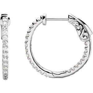 Platinum Diamond White 1/2 Pair Polished Inside-Outside Hoop Earrings