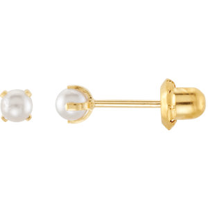 14kt Yellow PAIR 03.00 MM Polished SIM CREAM PEARL EARRING