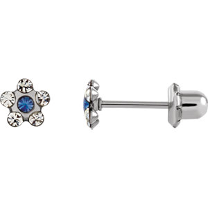 Picture of Stainless Steel 03.00X03.00 MM Polished FLOWER CRYSTAL PIERCING EARRIN