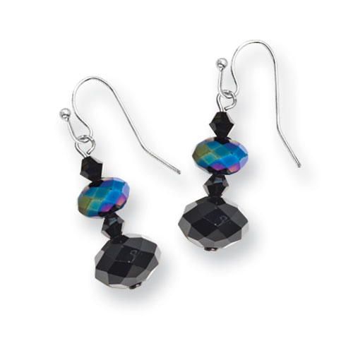 Black-plated Aurora Borealis Black Crystal Beaded Drop Earrings