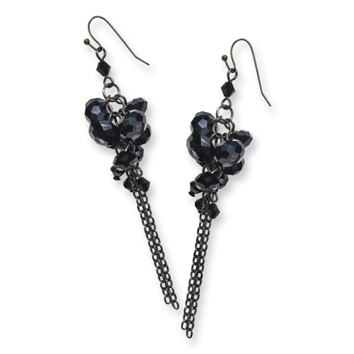 Black-plated Black Crystal Beaded Cluster Drop Earrings