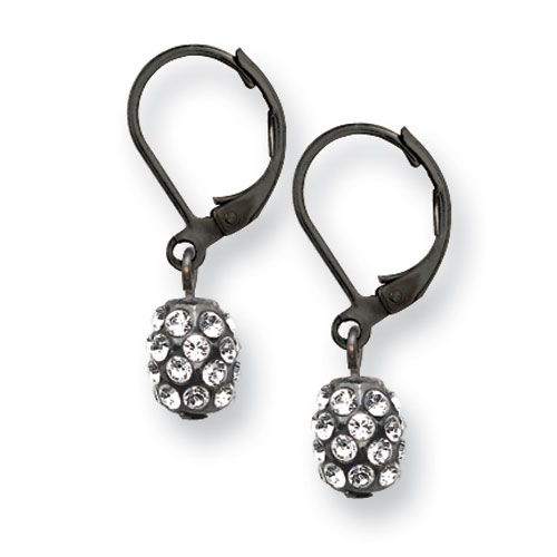 Black-plated Clear Crystal Fireball Leverback Earrings