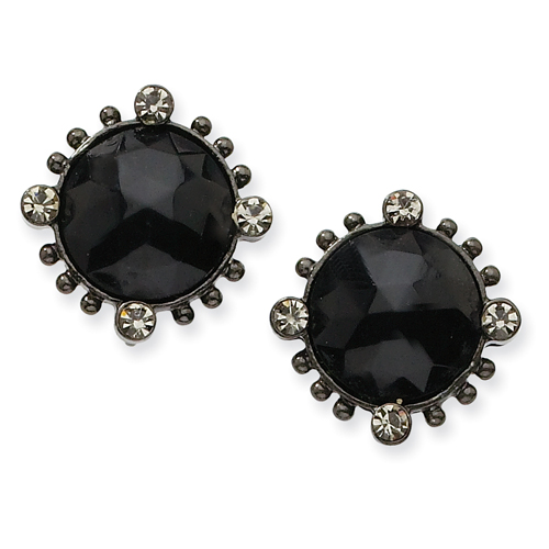 Black-Plated Faceted Jet Black Crystal Round Leverback Earrings