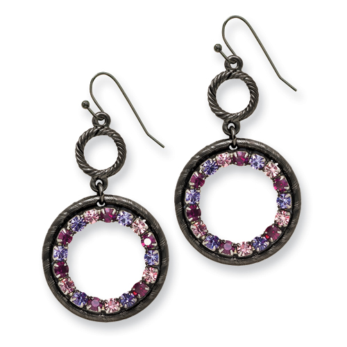 Black-plated Light & Dark Pink And Purple Crystal Circle Drop Earrings
