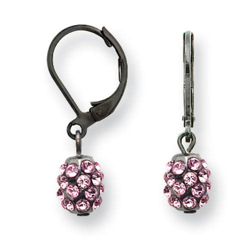 Black-plated Pink Crystal Fireball Leverback Earrings