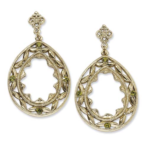 Picture of Brass-tone Green Crystal Teardrop Post Dangle Earrings