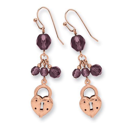 Copper-tone Heart & Lock With Purple Crystals Earrings