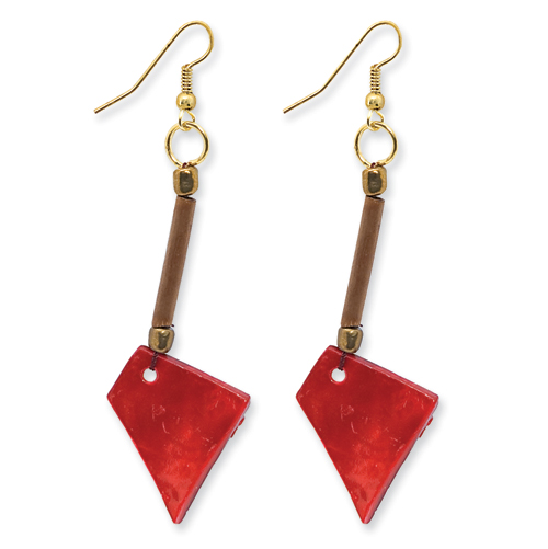 Picture of Gold-tone Bamboo, Capiz Shell & Acrylic Bead Dangle Earrings