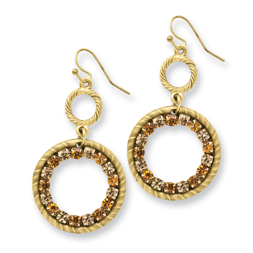 Gold-tone Light & Dark Yellow Crystal Circle Drop Earrings
