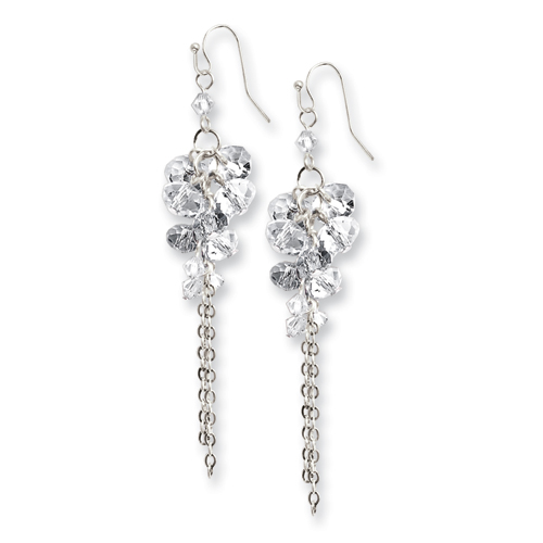 Silver-tone Clear Crystal Bead Cluster Drop Earrings