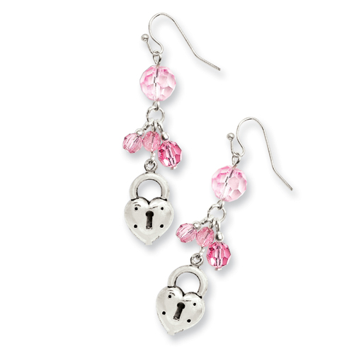 Silver-tone Heart & Lock With Pink Crystals Earrings