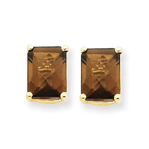 14k 8x6 Emerald Smokey Quartz Earring