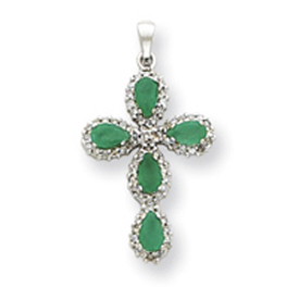Picture of 14K White Gold Diamond & Emerald Cross Pendant
