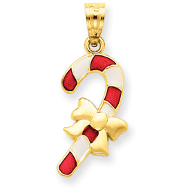 14K Gold Enameled Candy Cane Pendant
