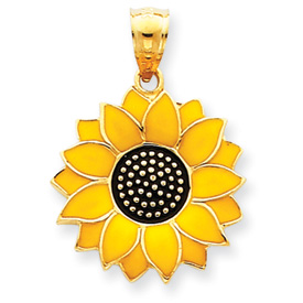 14K Gold Enameled Yellow Sunflower Pendant