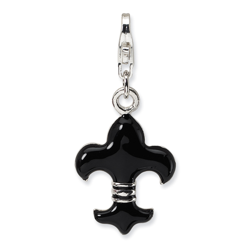 Sterling Silver Black Enameled Fleur de Lis w/Lobster Clasp Charm