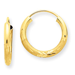 14K Gold 2x15mm Satin Diamond-Cut Endless Hoop Earrings